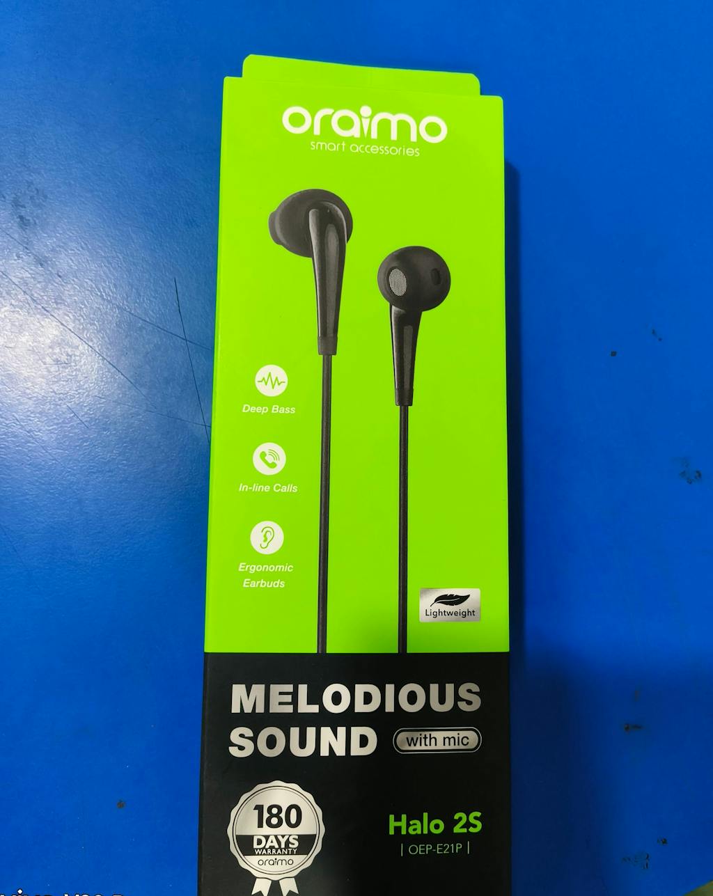 ORAIMO OEP - E21p Halo 2s Wired Earphone with Melodious Sound, featuring a 6-month Manufacturer Warranty. These earphones are compatible with various devices such as mobile phones, tablets, and laptops, providing versatile use for everyday audio needs. The Hol-2S Melodious Earphones are engineered to deliver an exceptional listening experience characterized by clear, high-frequency sound, allowing users to enjoy music, calls, and multimedia with remarkable clarity.